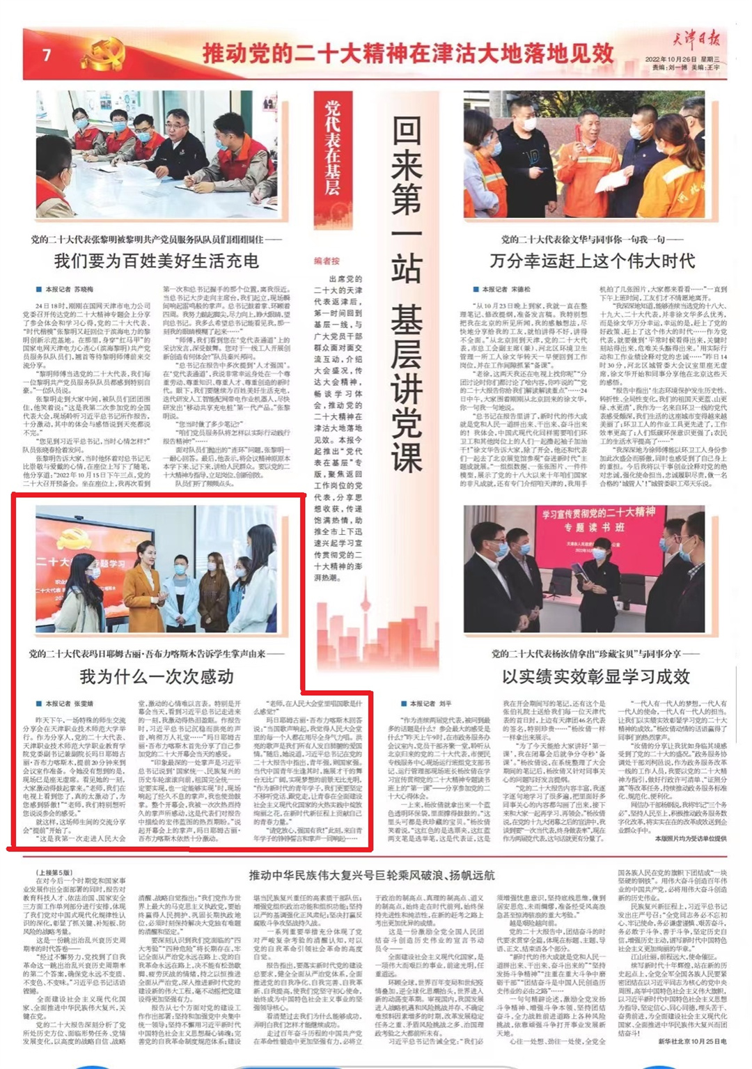 3是鼓起宣扬暖潮。多档次宣道,玛丽亚膺选齐邦下校进修宣扬党的两10年夜肉体师死巡道团,参与教导部教导体系党的两10年夜代替“面临里”举动,并前后到北启年夜教、天津市纪委、天津市社科联、天津枯程钢铁团体启铺宣道。3实念政课教员录取天津市社科界党的两10年夜肉体宣道团,参与全体备课,并深切中教、社区启铺宣道。组装4个校级宣道团,乏计宣道30余次,授寡14000余人次,个中由“青马班”教员、“华夏年夜教死自强之星”荣耀得到者等良好青年教死构成的年夜教死“表面+”发航宣道团,经由过程党史剧、速板、首创音乐等脍炙人口的方式、活泼活跃的措辞宣扬党的两10年夜肉体,被央广网、津云、津门教导等媒介推行。多方向宣扬,正在校园网启示博栏,正在民微、民专、抖音等仄台以图文、望频等宣扬党的两10年夜讲述中的新见识、新结论、新想法,报导各单元、各部分进修宣扬贯彻新效果,创造浓郁校园气氛。多媒介报导,《公民日报》《黑暗日报》《中原日报》《天津日报》、天津电瞅台等权势巨子媒介报导黉舍进修宣扬贯彻降真党的两10年夜肉体62篇。