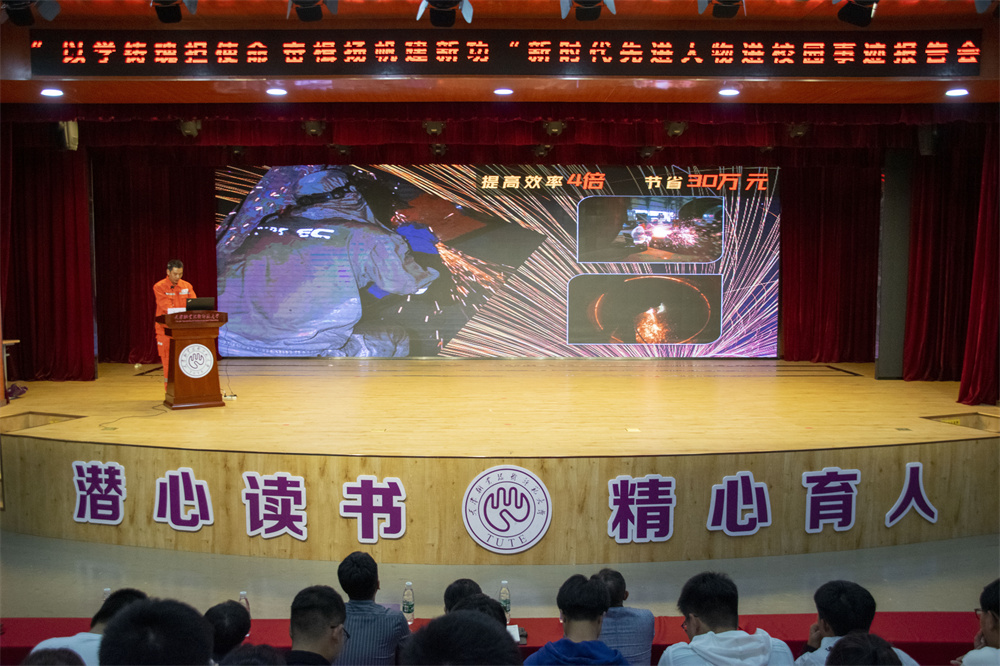 今日黉舍正在年夜教死举动主题铺演厅举行“以教铸魂担任务 奋楫扬帆修新功”新期间进步人物入校园第两场古迹讲述会,特邀齐邦青年岗亭高手、齐邦技能高手、天津市51休息奖章、天津青年54奖章得到者,陆地火油工程股分无限公司特种设置分公司电焊工特级技师宋凯做博题讲述。