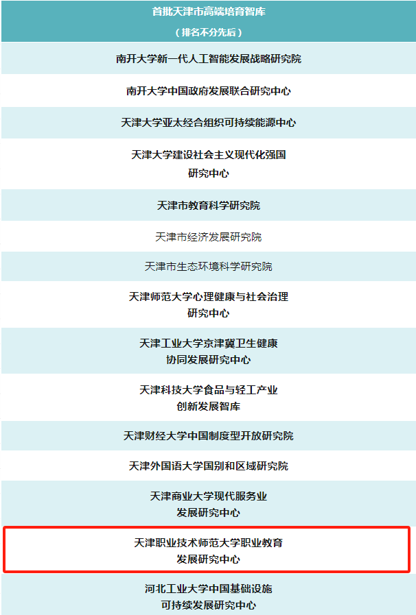 原网讯【通信员 弛俗慧 王娜】指日,由市委宣扬部、市社会迷信界团结会机关的天津市尾批下端智库拣选了局发布,rb88体育劳动教导成长研讨主旨考取天津市尾批下端培养智库。原次同评比出15家天津市下端培养智库。